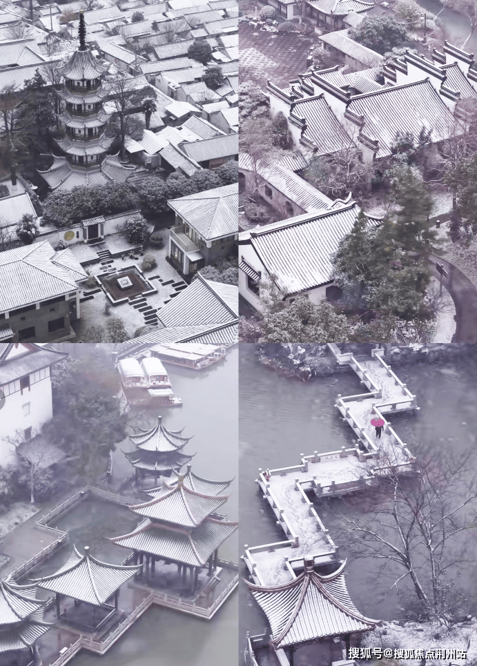 初启的实景示范区,正逢一场南通的冬雪初歇。驻足邀月亭,视线由近及远,一幅层次分明、诗意盎然的雪景图,正徐徐铺展。