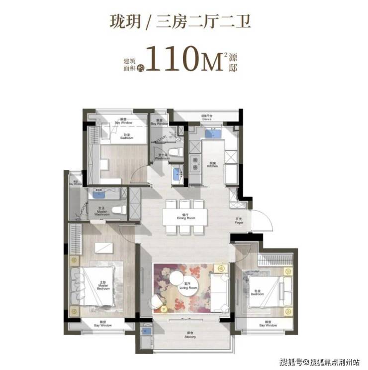 110㎡3房,三开间朝南,飞机户型,客厅面宽4.3米,