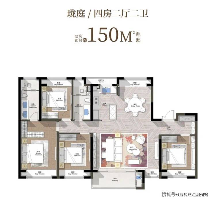 150㎡4房户型,4开间朝南,加上净面宽6.1米的超大横厅,居住舒适度很高。