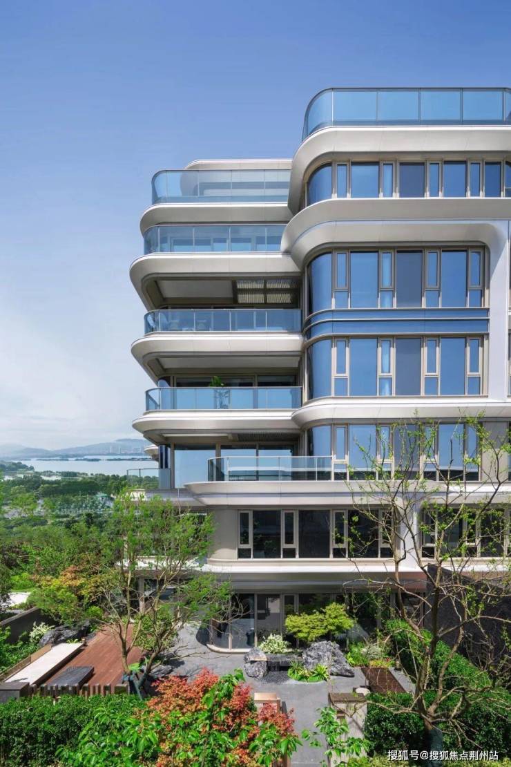 绿城·无锡奥体潮鸣建筑外立面以太湖和奥体中心为灵感,采用了扎哈·哈迪德的标志性曲线,整体宛如流动的太湖水,独具艺术美感。细节设计处以圆弧转角代替传统直角,搭配大面积的玻璃窗运用,融汇人文与品质的光辉。