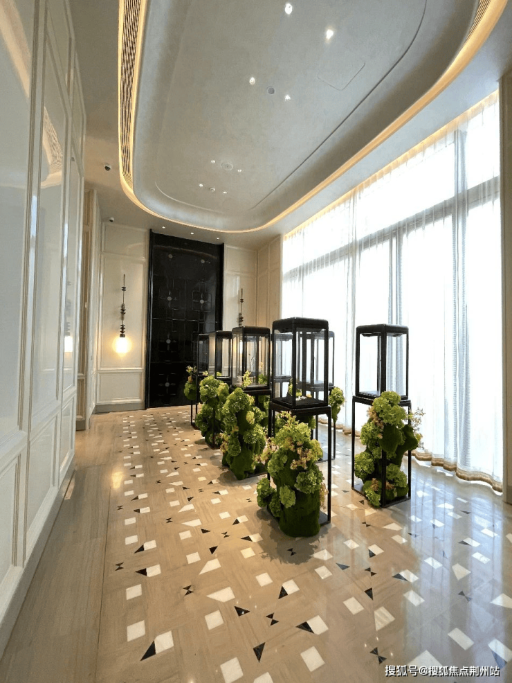 穿过「玉树门庭」,即进入项目生活馆。室内精装设计以嘉佩乐酒店为基底,隐奢风十足。