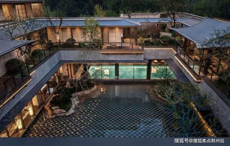 在宝格丽绿奢石屏风背后,是豁然开朗的约500㎡下沉水院。