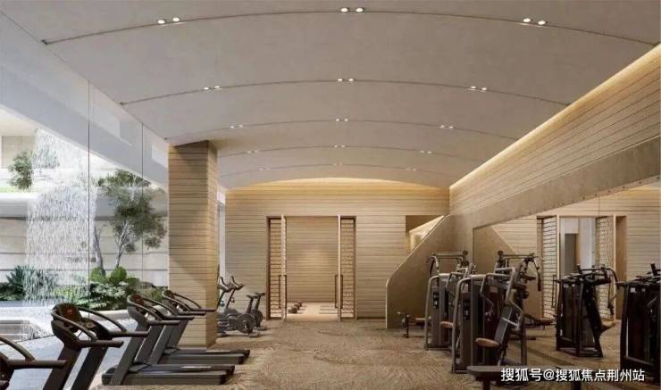 区域首创国标壁球馆、飞瀑园景健身房、嵌入式景观书吧等,整体统一化仿树榴木纹贴面,还原内外统一的高级度假酒店质感。