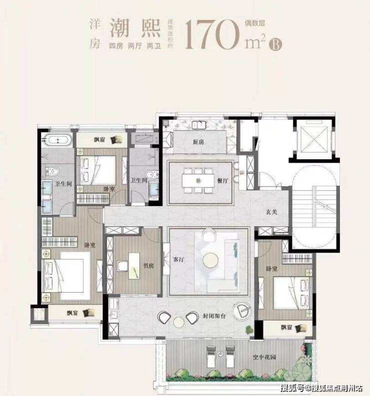 更别说将传统阳台升级为空中露台的四代宅代表特点,四代宅某种意义上是将大平层与别墅的结合体,让平层的整体性便捷性与院落的从容雅致兼收并蓄。