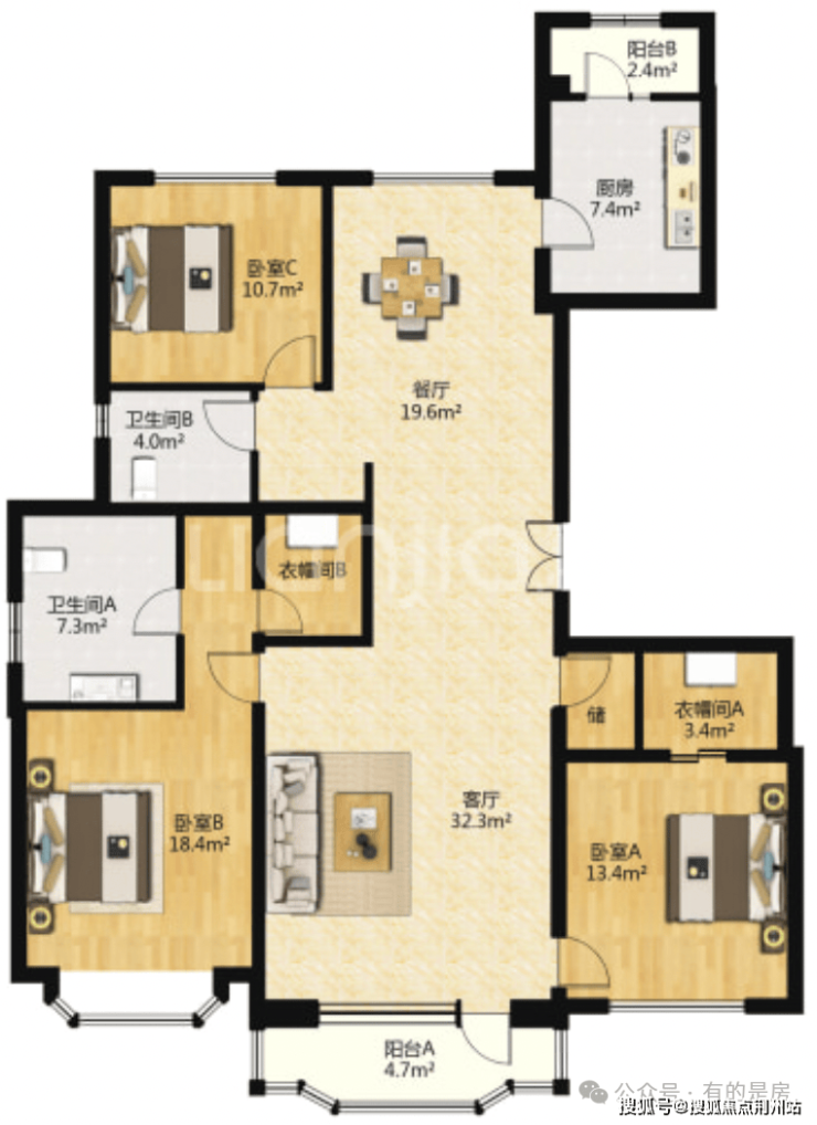 南区以两居为主,面积段在85-92平之间,还有部分小户型的三居,当然这也只是臻园同小区对比而言,面积为135平。放到其他小区看,135平也算比较大面积了。