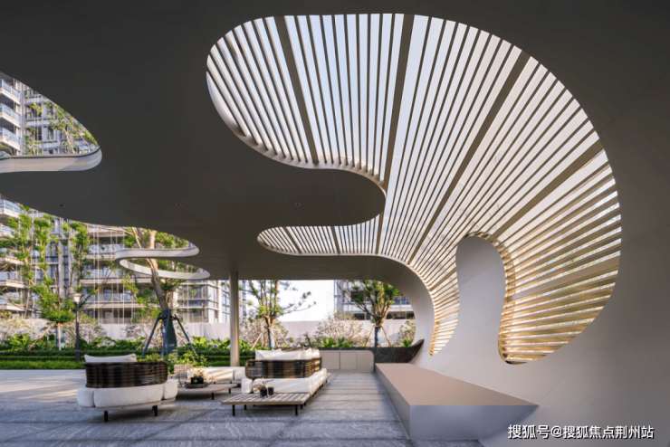 值得一提的是,项目在建筑立面中创新植入"文化基因"——天幕流云立面采用大面积玻璃幕墙与香槟色铝板线条,既呼应梁溪河畔的历史厚重感,又以现代建筑语言映衬主城天际线,让文化传承渗透于生活的一步一景中。