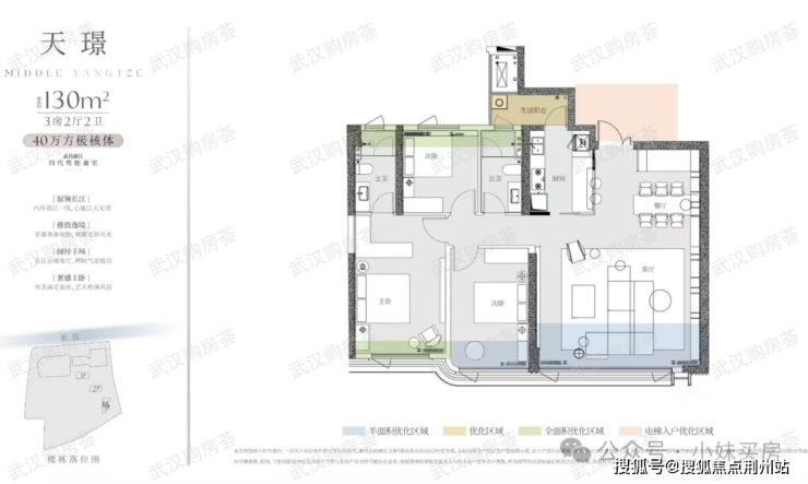 最靠里的3号楼总高44层,三梯三户,主打130、140、170平户型。