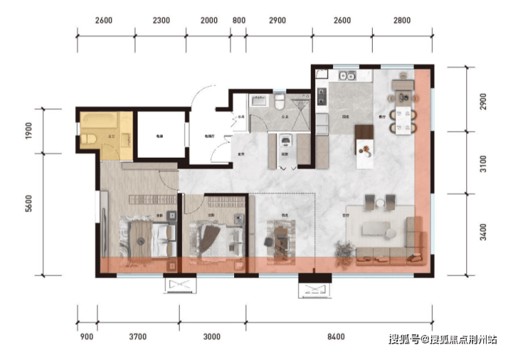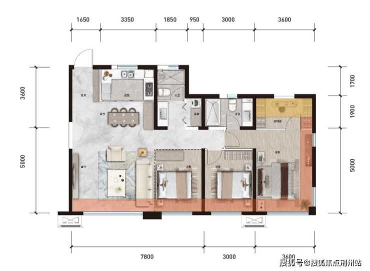 建面约126㎡户型:LDK一体化,约7.8米可变灵活社交宽境,南向约14.4米四面宽,采光通风俱佳,罕见270°折叠视窗,形成约19.4米全景视野。