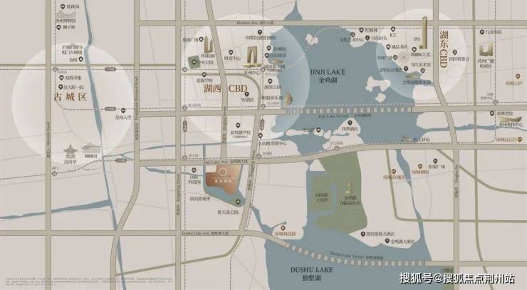 这里北接CBD 的璀璨繁华,西承姑苏千年的历史气韵,东揽金鸡湖与独墅湖的潋滟波光,既有城市的便捷与活力,又有难得的宁静与诗意,是真正实现了繁华与自然的完美融合的好地方。