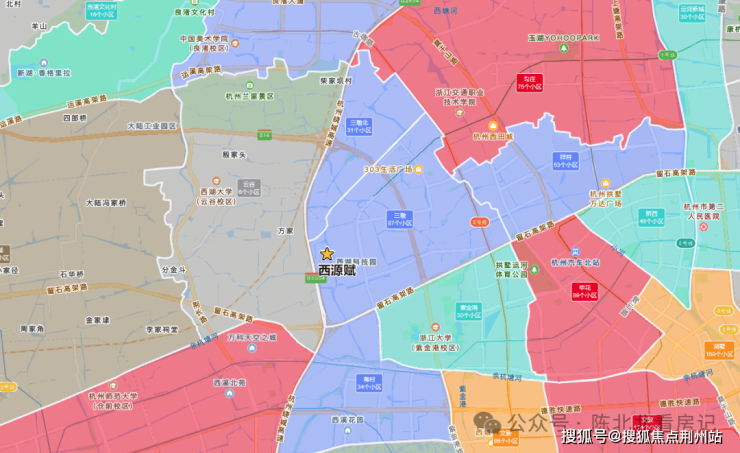 南面则是很多人爱拿来做锚点的蒋村和紫金港板块