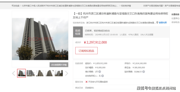 早在2019年,栖棠誉湾就开放过售楼处,宣传将在次年中旬首开168套洋房。当时宣发都做了一批,但最终还是不了了之。直到去年11月14日,因债务问题被法拍的栖棠誉湾,被华能以22.97亿元的价格接手。