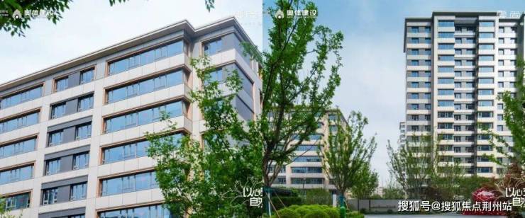 不得不说,奥体建设还是非常有超前格局的,在别人家还在做铝板一体板的外立面时,就已经迭代到干挂铝板与大面积玻璃的组合。远远望去,宛如一件精心雕琢的艺术品,高级感呼之欲出。