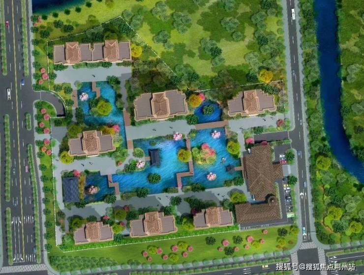 占地约2.65万方的西地块内,水景面积就超过了4400㎡,是经开区面积最大的水系园林。