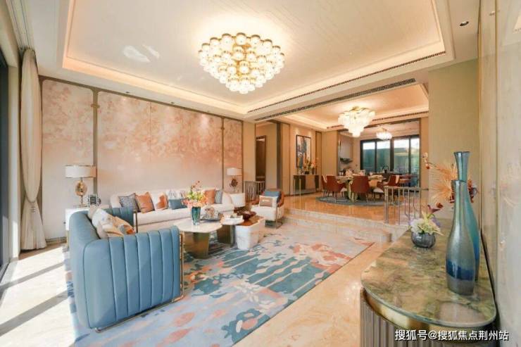 它甚至奢阔到可以在室内做错层设计,丰富空间格局;可以在客厅挂上豪华水晶灯,也不显压抑,这才是大世家的气度与排场。