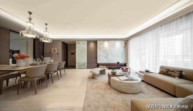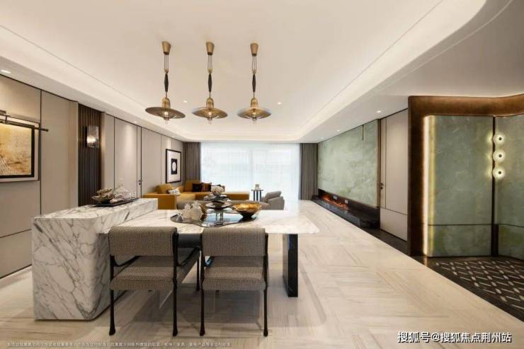 在建面约251㎡的客厅里,你会看到一大块来自伊朗的「白雪公主」,这么昂贵的玉石,通常都只舍得放在楼盘主入口点缀,现在,自己家里就拥有了一整面;