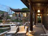 桂香园三面环水,引水入园,凝汇藏风聚气的如意上善格局。 近 1000㎡的 礼仪 车马院, 以西子湖四季酒店为蓝本, 溯源宋代名门归家礼序,让每一次归返如入风雅宋画。