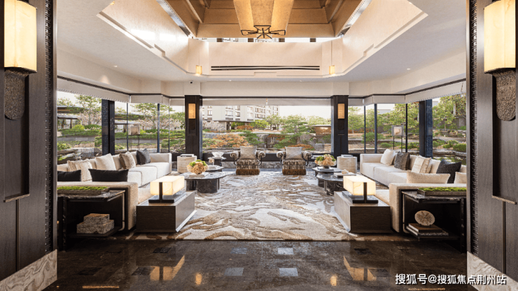 天香水阁以超80㎡的敞开格局,三面无框全景玻璃环绕,将园林水色尽纳眼底。中央设黑玉聚宝盆水景,取意“ 四水归堂,财源汇聚”;侧畔静泊的景石由整块“中国黑”石材精琢而成,取意一帆风顺。 松、桂、槭等嘉木点缀 其间 ,四时景致深浅成画,一步一景,如在诗中行。