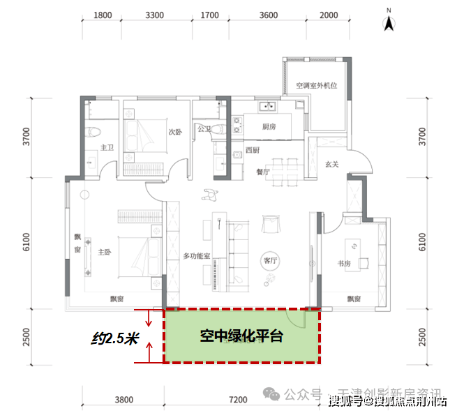 再加上,北侧转角露台、以及飘窗等,最高得房率约达115%。
