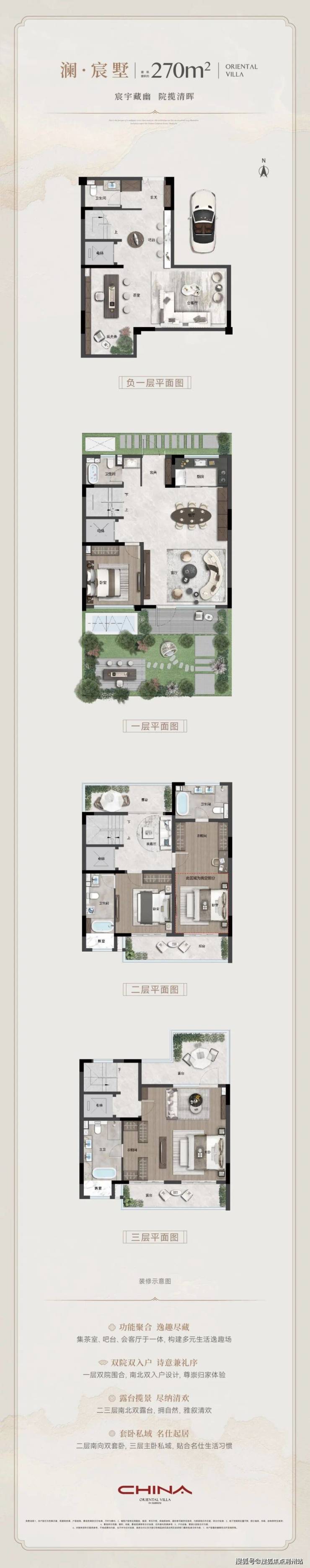 产品面积:联排建筑面积约270㎡-300㎡