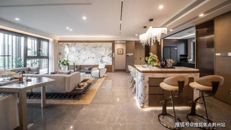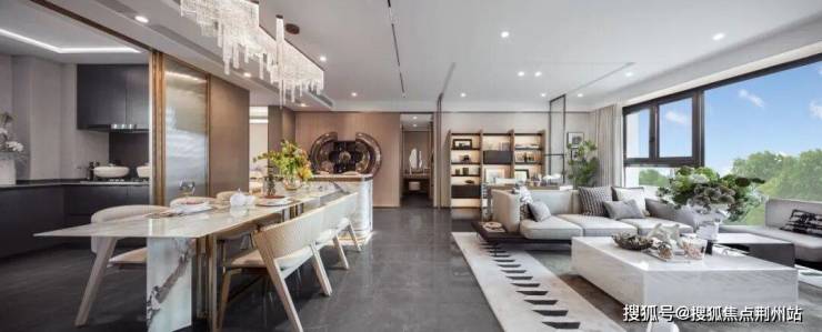 约13.8米南向面宽,客厅南向面宽约6.8米,十分奢阔大气。52㎡洄游巨厅,不只是普通的客厅,更是: