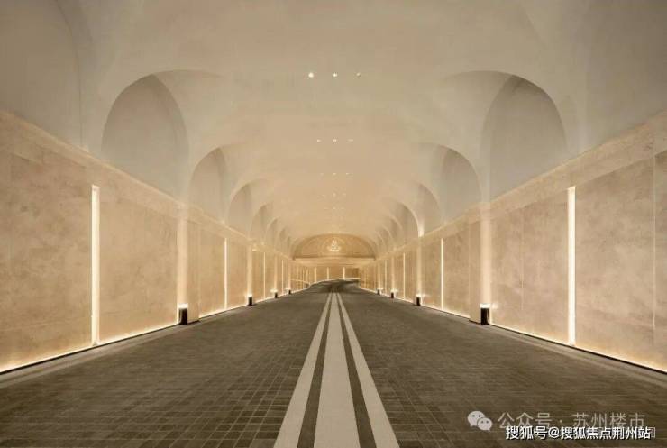 地库升级革新:打破豪宅地库“孤独停车场”的刻板印象,法式穹顶造型+定制铝板+灯光勾勒,打造 “曜阶光厅”;