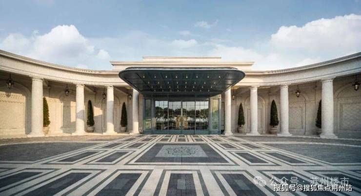 法式经典迭代:入口约75米欧式多立克柱廊,复刻圣彼得教堂与巴黎皇家宫殿仪典感,融合中式环抱纳福之意;