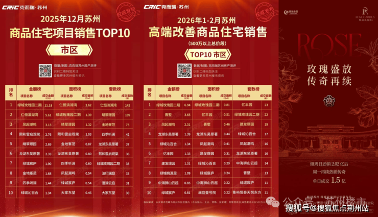 2025年12月,成交总金额蝉联冠军,仅2个月时间,强势拿下2025下半年苏州新房销售金额冠军;