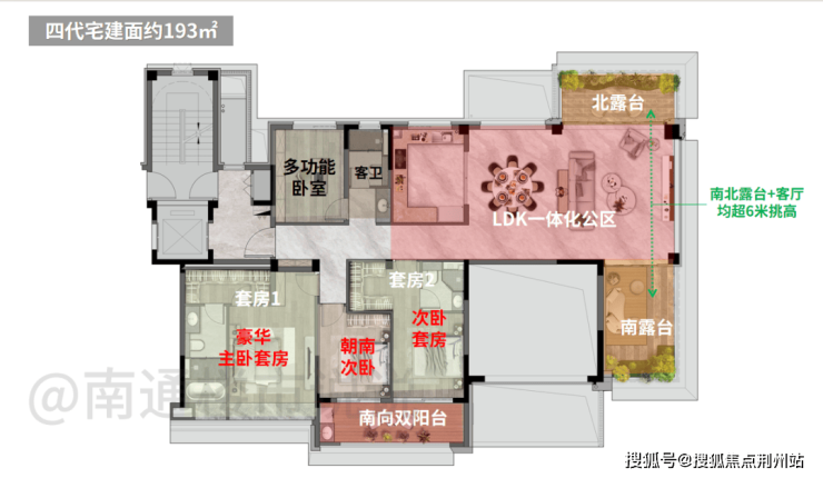 先来看万濠东郡这款建面约193㎡四代宅户型的突破性设计,可以说再一次颠覆了南通第四代住宅的空间概念。