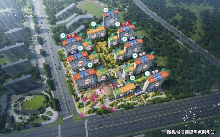 <住宅立面效果图>〖10000㎡公园 五感沉浸式文化栖息地,〗:配建约10000㎡公园,打造以“蘑力充电堡”“云养草基地”为主要功能区,把公园搬进住区,生活自此无界