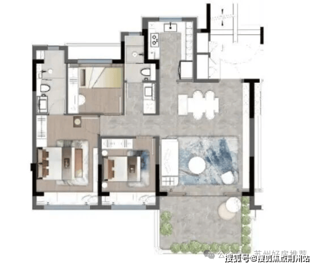 云阙户型建筑面积约120㎡ 三房两厅两卫超享尺度|约6m横厅布局|酒店级主卧套房|约17㎡露台花园|3+X灵动空间