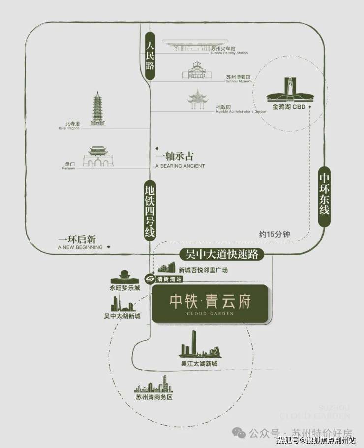 速度先锋——中环线,串联全域枢纽,约15分钟速达姑苏主城、狮山核心区、金鸡湖CBD,以立体路网焕新通勤效率,勾画“半小时全城生活场”。