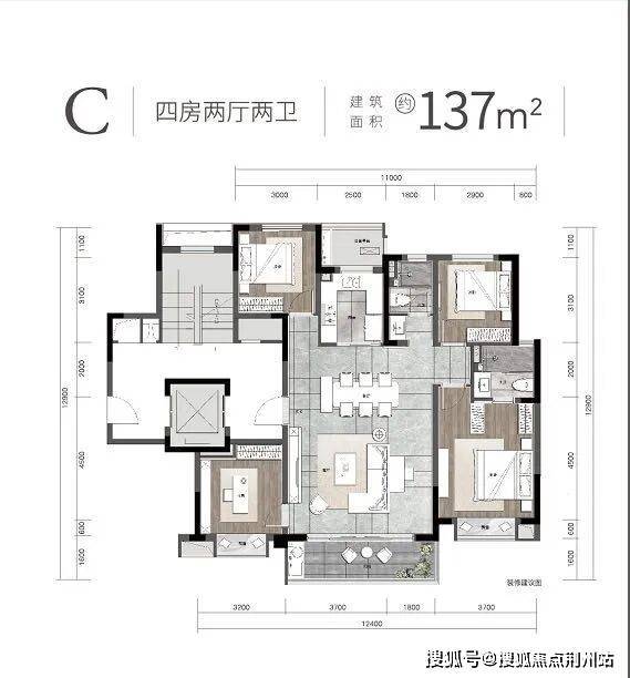 这款约137㎡的宽景四房,也高度契合改善家庭的审美。