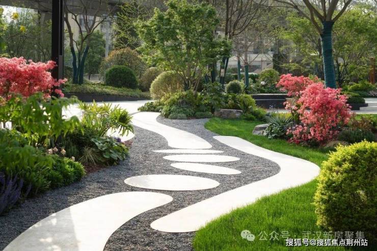 项目北靠洪山,南临南湖,地势北高南低,占据大武昌中心地利。项目结合地势高差,在约7000㎡中央公园打造上,以“叠山”、“理水”、“茂林”、“修花”四大维度,诠释观山听泉的园林意境。