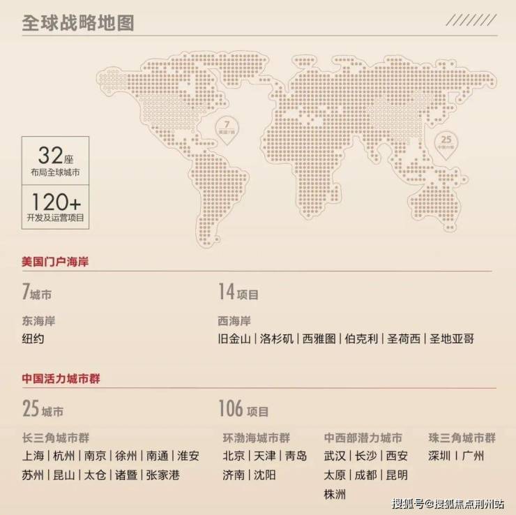 业务覆盖中国200余座大中城市和美国东西海岸的8个城市。连续多年入选福布斯全球企业排行榜,《财富》中国500强榜单,2023房地产开发企业综合实力百强榜单(TOP100)第8名。(数据来源于CRIC,上海易居房地产研究院)