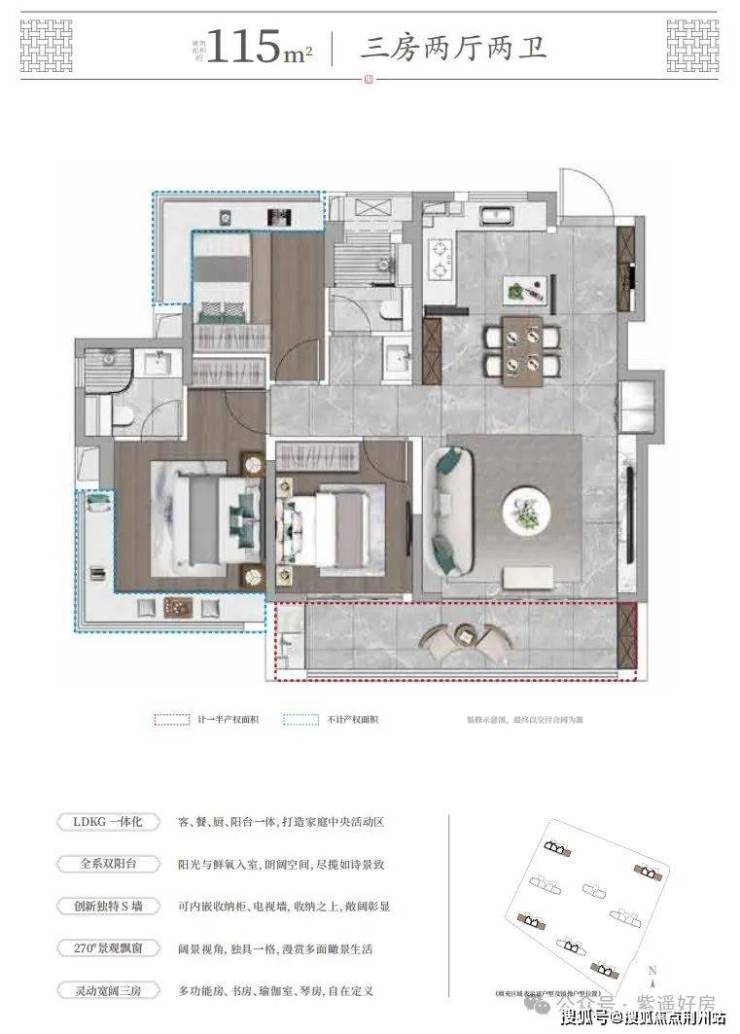 99-115㎡三房:首改优选,南向双卧+客厅阳台通透布局;