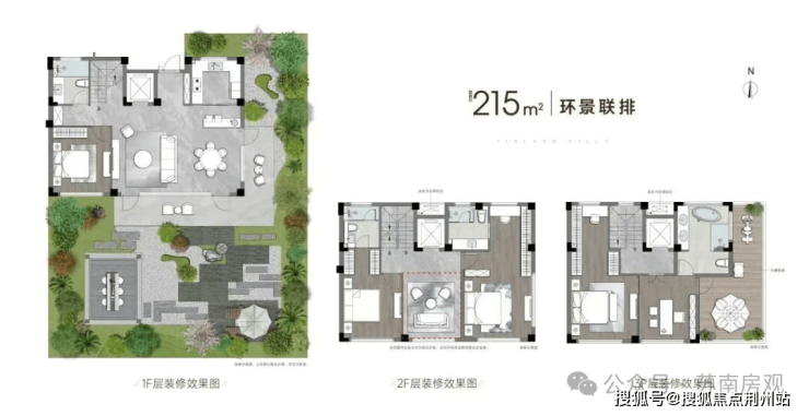 其中下叠产品,充分实现庭院革命,让生活“长”在自然里, 270°三面围合庭院,宅景比例超过1:1。这不再只是“有院子”,而是让庭院成为家庭生活的核心现场。约7.3米南向大横厅搭配全景落地窗,实现室内外交互的无界对话。