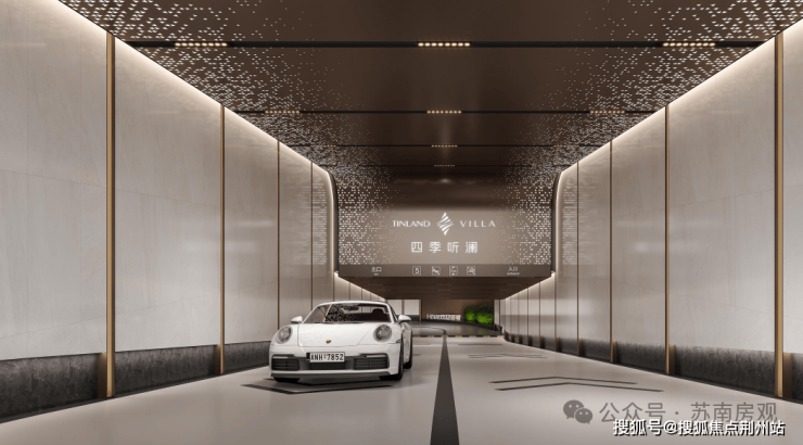 雅奢电梯与高配地库,尊崇感无缝衔接:电梯轿厢内,岩板、皮纹防火板与灰玻勾勒出静谧奢华;地下车库则以高定吊顶、玄关化设计与璀璨灯光,让停车时刻也充满仪式感。