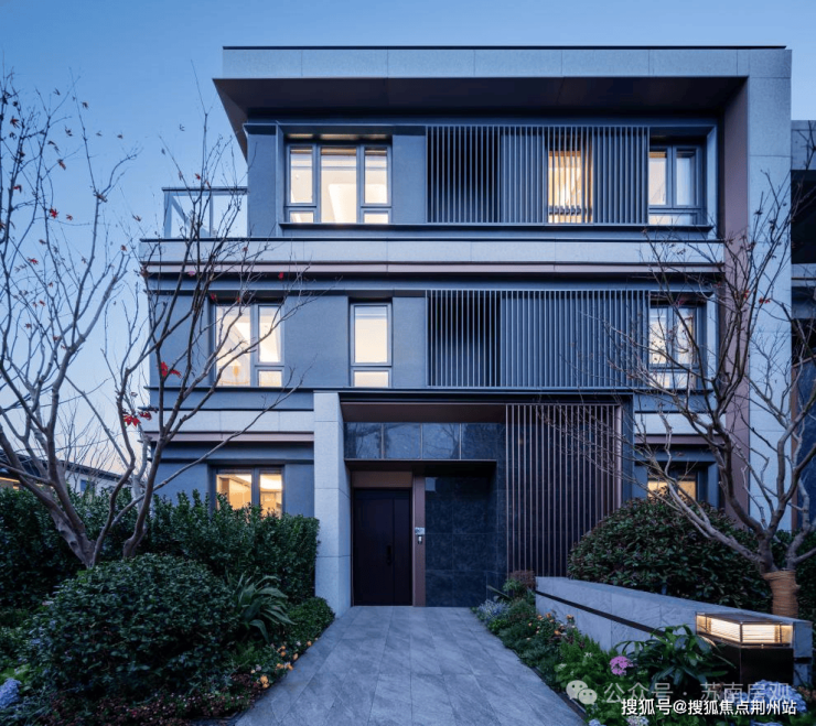 约37米恢弘府门,第一眼气场全开:融合东方礼序与现代线条,用仿石砖、金属格栅与灵动水景,铺就气势十足的归家序幕。