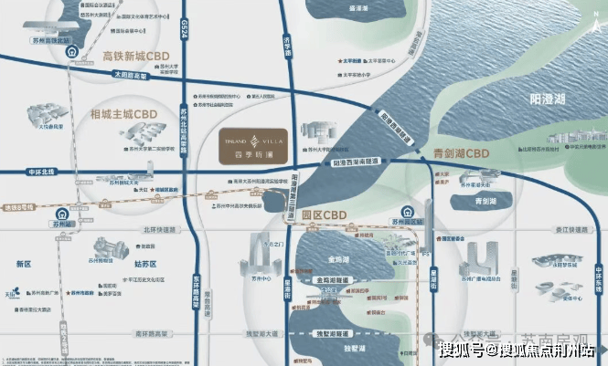 ①四大CBD黄金交汇点:傲踞园区、青剑湖、相城主城、高铁新城四大核芯CBD黄金交汇点,四大板块势能叠加,集城市资源富集度与生态宜居性于一体,成为塔尖人群竞相争藏的价值高地。