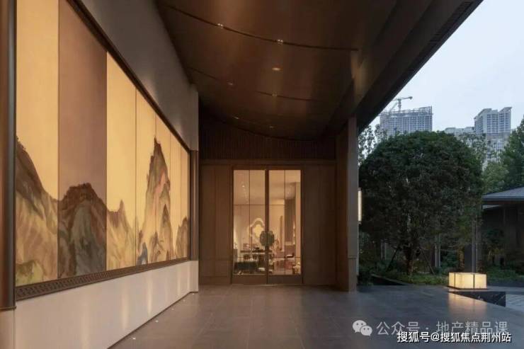 【府门听瀑】依托城市主干道的影响力打造70m长“承宁府”形象展示界面,在都市核心塑造让人耳目一新的府邸形象。同时利用市政绿化的厚度形成游园式的自然隔离带,入口区域设计落客车马院营造具有酒店感的专属归家体验,一举多得的将规划条件转换为项目优势。