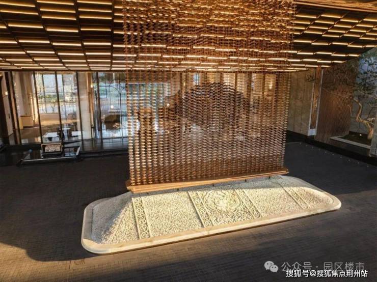 约85米的东方屋檐归家社区大门,整个门头以古代帝王冠冕为设计概念,大门中间以高约6.1米宽约6.5米的定制凤起“冕旒”,整个冕旒约6045片景泰蓝纯手工完成,全苏州独一无二。
