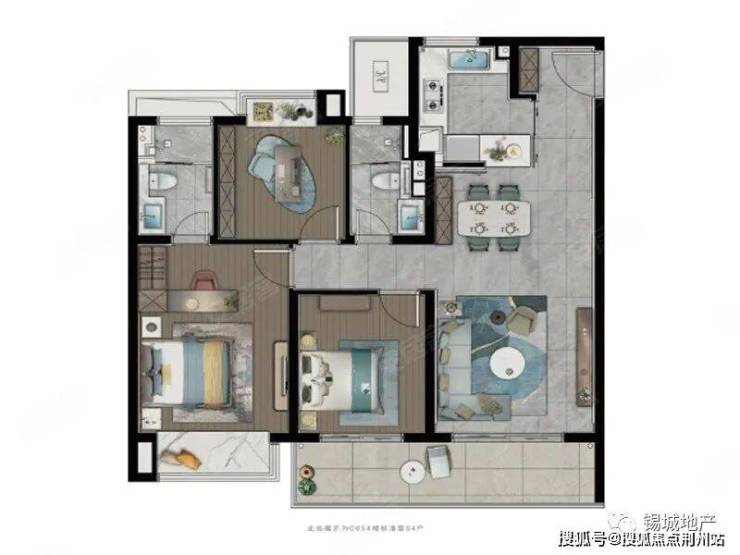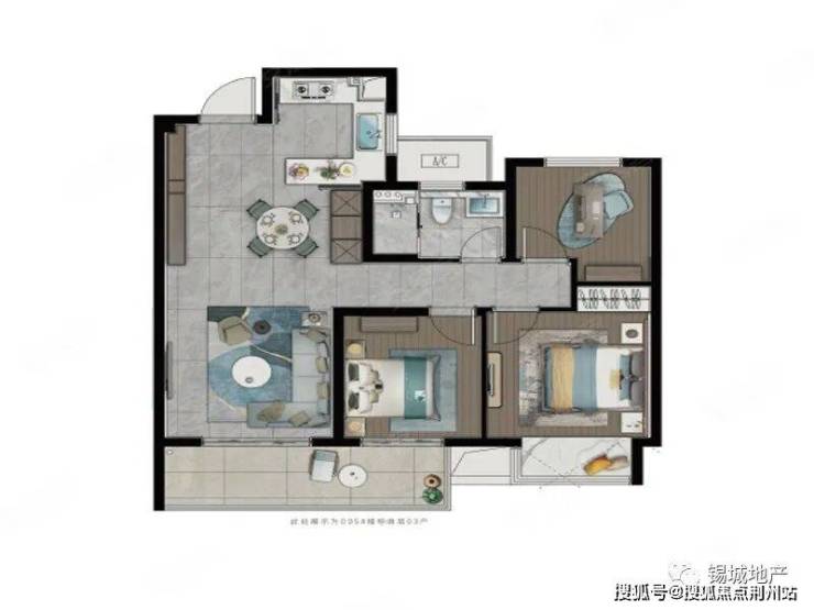 C地块(左下),总高22层小高层,两梯四户,精装修,96与112平三房;