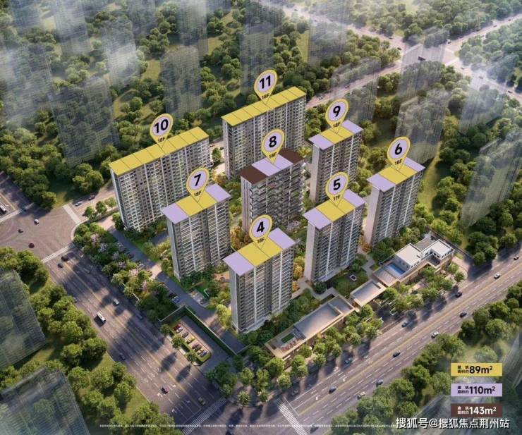 整个小区有8栋楼,其中中间那个楼王带露台。主力户型是89-143㎡,主打刚需刚改!