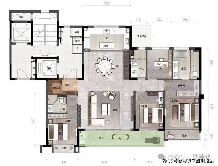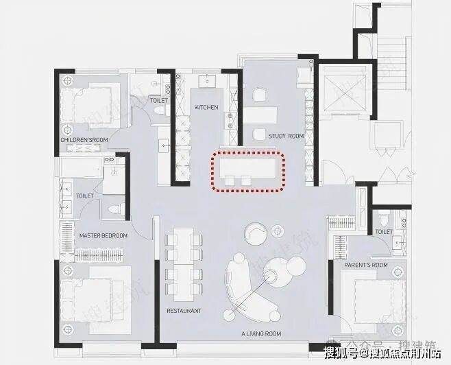 很多户型,提出一个“全生命周期”概念。中国铁建西派御江约175㎡户型完全可以胜任。