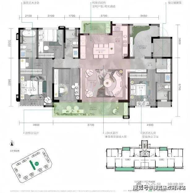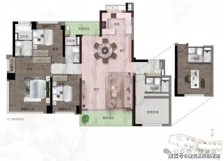 比如西安大明宫金茂府约175㎡户型,可以满足多元家庭的复杂需求。