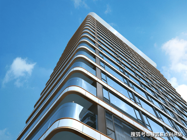 项目运用大面积现代玻璃搭配大量金属元素,以横 向线条+圆角亲和力+曲线 打造未来感,整体窗地比在 0.26-0.27 左右,完美诠释现代极简主义的地标级公建化外立面。