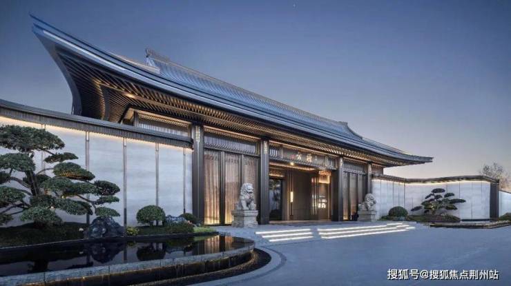 立面采用豪宅 “流体建筑”新中式设计理念 。以曲水的自然肌理和立面水波纹理相呼应,打造优雅流光曲线立面,彰显艺术气韵,屋顶搭配“皇冠”造型艺术冠顶,叠加现代时尚金属质感立面,利用光影变化诠释了流体立面的未来感与动态美。