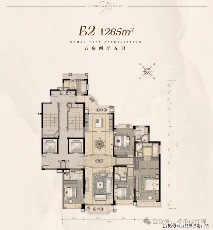 ▶7号楼(B2)建面约265㎡ 五房两厅五卫