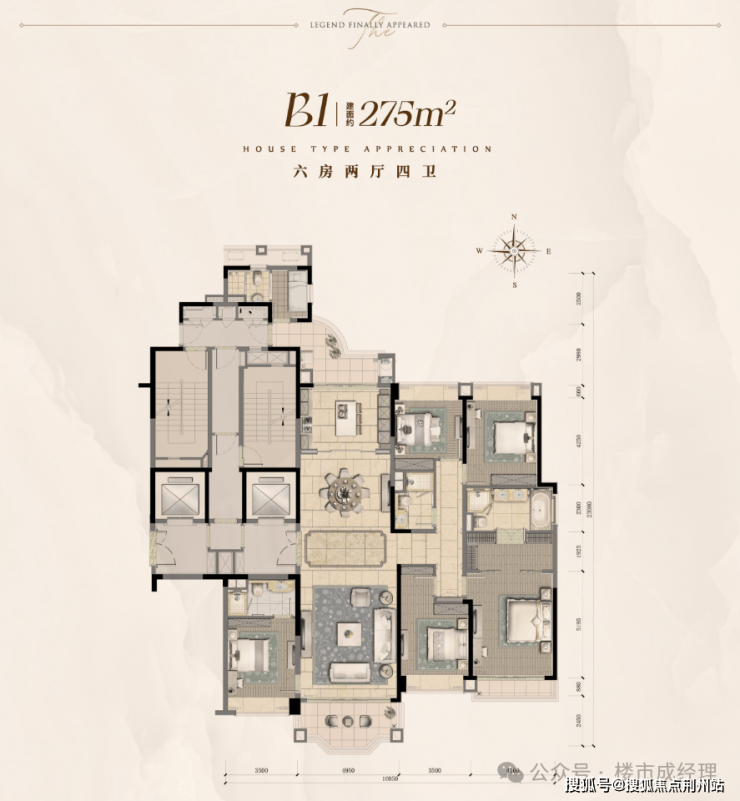 ▶8号楼(B1)建面约 275㎡ 六房两厅四卫qi