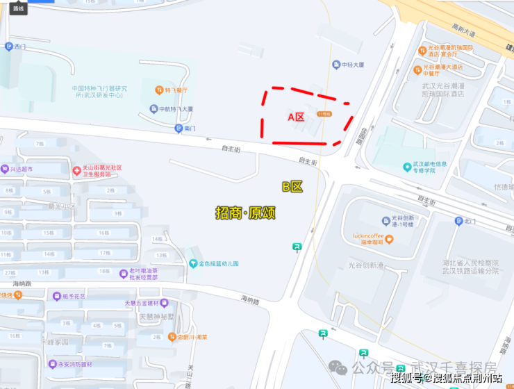 项目北面是A区商业办公,南面是公园,西面舍隔光社区老旧社区、东面是创新港.
